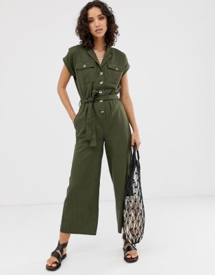 Utility Button Jumpsuit Khaki