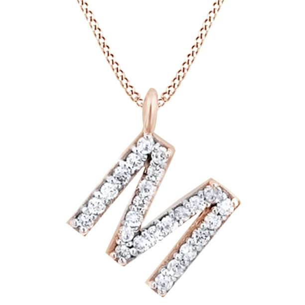 Jewel Zone US - 0.28 Ct Natural Diamond M Initial Letter Pedant Necklace In 14K Solid Rose Gold