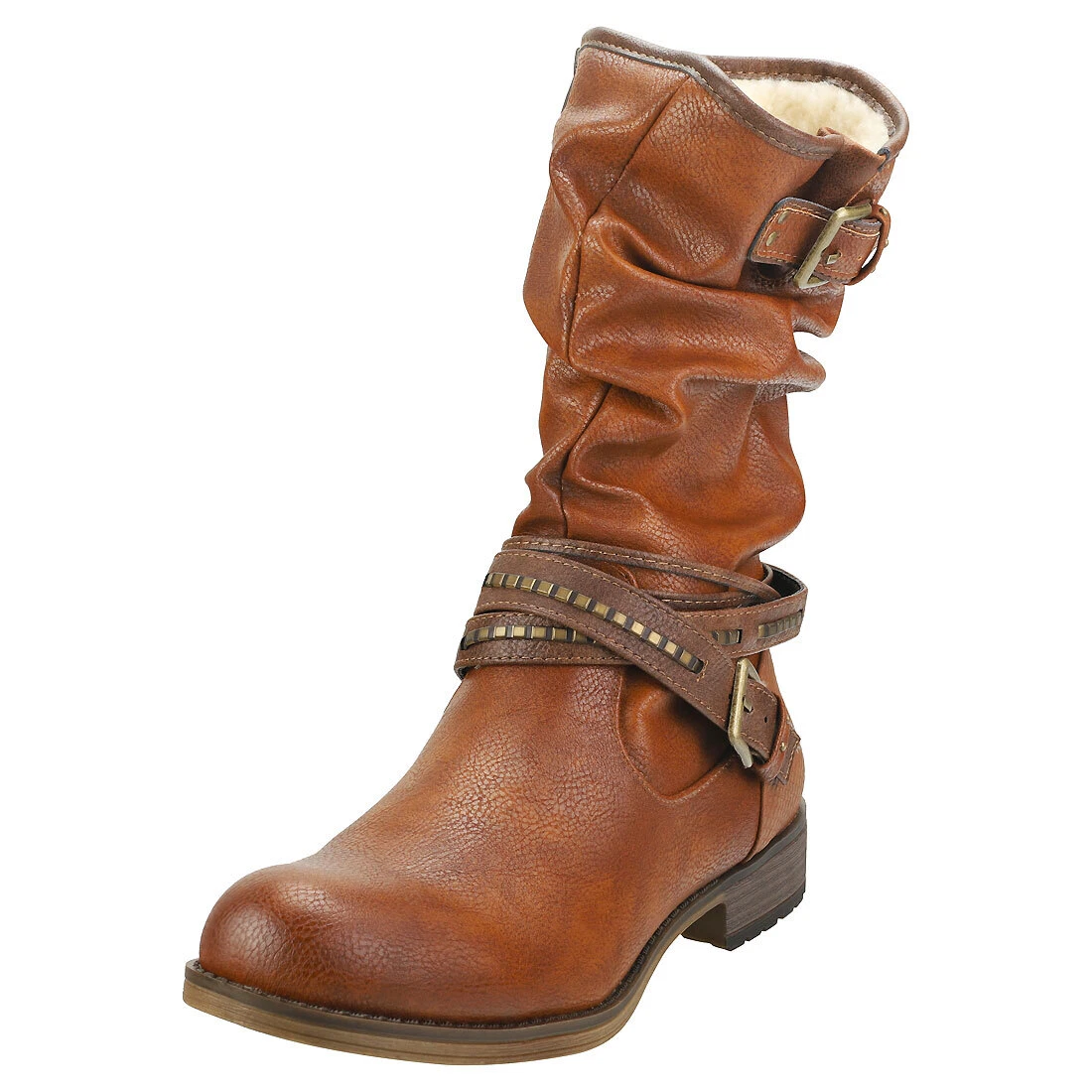 Mustang Winter Ankle Boots Womens Cognac Biker Boots | eBay
