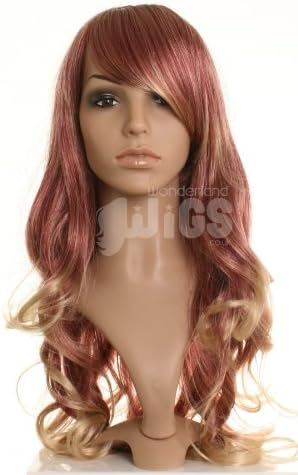 Dark red wig with blonde highlights