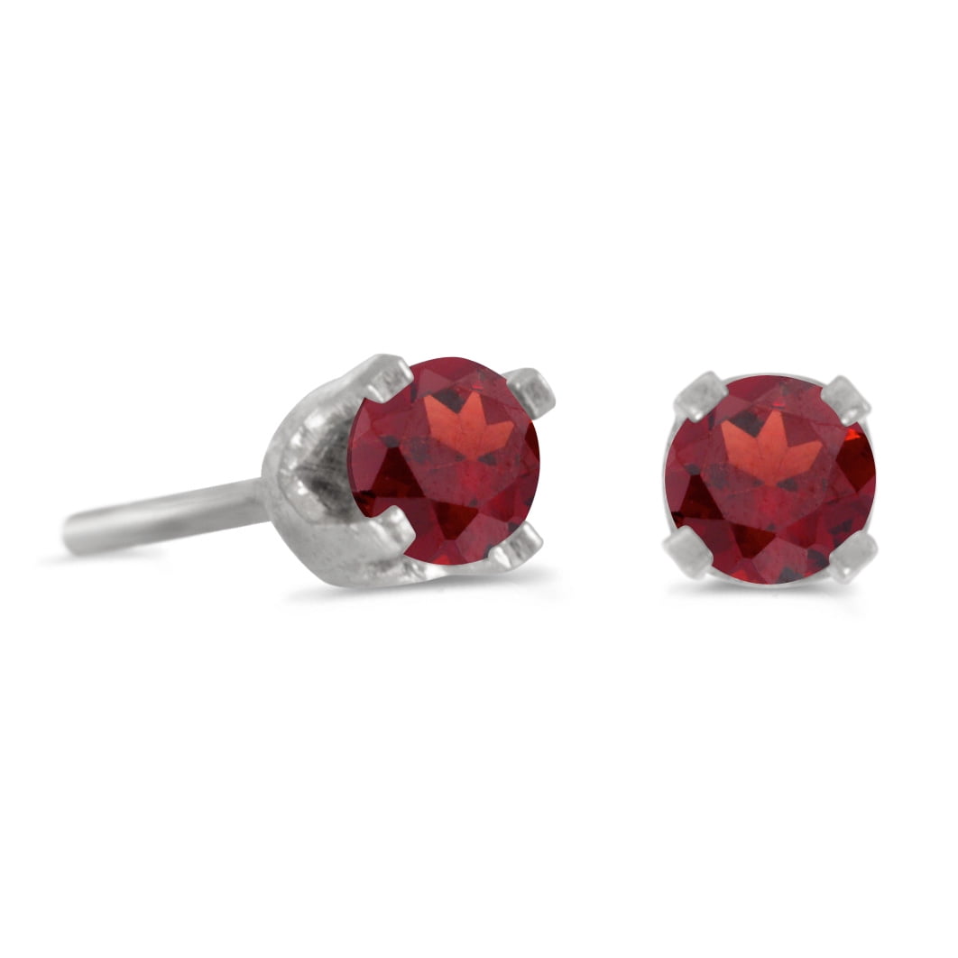 3 mm Petite Round Genuine Garnet Stud Earrings in 14k White Gold - Walmart.com