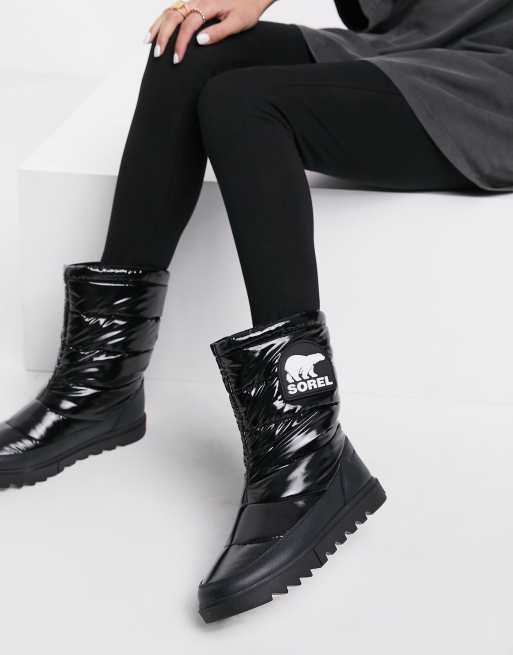 Sorel – Joan Of Arctic – Gepolsterte Schnee-Boots in schwarzer Lacklederoptik | ASOS