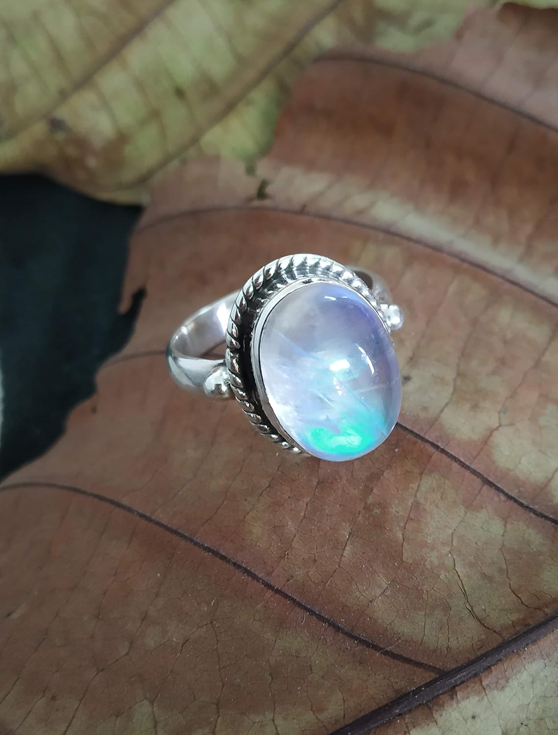 Amazon.com: Rainbow Moonstone Ring, Blue Flash Ring, Moonstone Jewelry, Oval Moonstone Ring