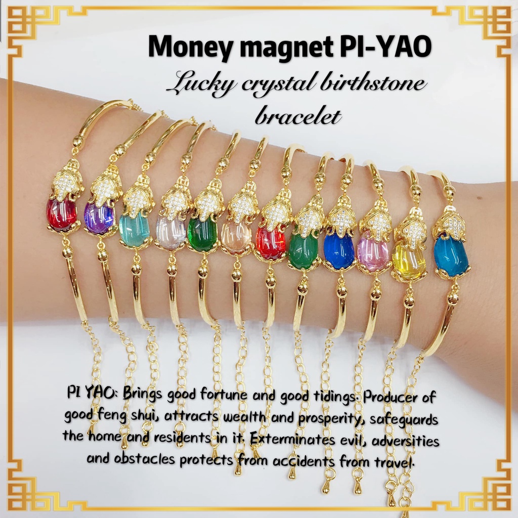 Money Magnet Pi-Yao Gemstone Lucky Crystal Birthstone Charm Bracelet for Women | Shopee Philippines